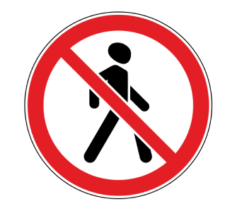 Жаяу жүргіншілердің қозғалысына тыйым салынады «Жаяу жүргіншілердің қозғалысына тыйым салынады» деген белгі жаяу жүргіншілердің қауіпсіздігіне байланысты жол берілмейтін жерлерде орнатылады (тротуарлары жоқ жасанды құрылыстар, жолдардың жөнделетін учаскелері және т.б.). Белгі тыйым салу енгізілетін жолдың жағына орнатылады.