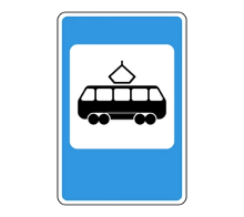 «Трамвайды тоқтату орны» жол белгісі Белгі трамвай жолдары жүріс бөлігінің ортасында немесе бір жақты қозғалысы бар жүріс бөлігінің сол жағында орналасқан кезде жүріс бөлігінің оң жағына орнатылады.