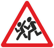 Абайлаңыз балалар Үшбұрыштың ішіндегі балалар екі жүгіретін адам сияқты боялған. Бұл белгі жүргізушілерге ерекше назар аудару үшін мектептердің жанында орнатылады.