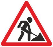Жол жұмыстары Жол жұмыстары – үшбұрыштың ішіне күрекпен адам салынған. Ол жүргізушілерге жолда жөндеу жұмыстары жүріп жатқаны туралы ескертеді.
