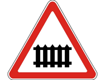 Шлагбаумы бар теміржол өткелі Шлагбаумы бар теміржол өткелі – үшбұрыштың ішінде теміржолдың суреті салынған. Бұл белгі жүргізуші мен жаяу жүргіншіге теміржол өткелінің алдында шлагбаум бар екенін хабарлайды.