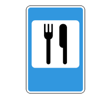 «Тамақтану пункті» жол белгісі Жол белгісі сізге тамақтануға болатын орынды көрсетеді.